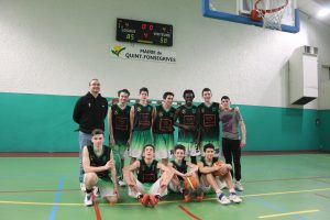 U17M : Nos cadets ne se sont pas déconcentrés malgré le retard d’une heure dans le démarrage du match et ont montré un bon travail d’équipe. Avec un excellent match de Vincent (31 points dont 13 LF), Thomas (16 points) et Marcus (15 points). Score final 85-58. Il s’en est fallu de peu pour que Bastien, en toute fin de match, couronne cette belle journée avec un dunk, parti tout seul en contre attaque après une belle interception.