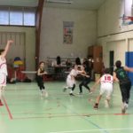 Le match débute sur un rythme très rapide, avec beaucoup d’engagement des deux côtes et une défense bien organisée des fonsegrivoises qui perturbe les locales. Ces dernières refont surface et arrivent à organiser leur jeu, puis creuser l’écart (+13) mais juste avant la pause nos joueuses reviennent à -7 (38-31). Moins de 5 minutes après la reprise, elles reviennent à égalité. Mais un peu de doute et de nouveau les bleues prennent la large (54-46 en fin de 3e quart). Gros suspense en fin de match, Fonsegrives restant quelques points derrière sans arriver à recoller, pour finir 68-66. Un des meilleurs matchs de la saison de cette équipe U18F qui monte en puissance. Les filles ont montré de l’organisation collective, de la ténacité et de la concentration, même en étant menées au score. Bravo aussi à l’équipe de Bruguières-Launaguet . Un beau match de basket qui a ravi tous les spectateurs.