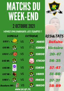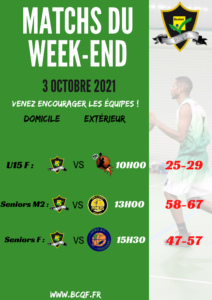 | RM3 | 3842 | IE – OUEST TOULOUSAIN BASKET – 2 | BASKET CLUB QUINT FONSEGRIVES – 1 | 02/10/2021 | 89 | 58 |