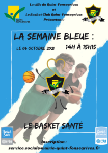Les photos du Basket Santé pendant la semaine bleueBillet publié dans Evénement le 12 octobre 2021 par Frederic.P Dans le cadre de la semaine bleue, le BCQF a proposé le 6 octobre 2021, une séance de Basket Santé très appréciée par les participant-e-s. https://www.bcqf.fr/wp-content/uploads/2021/10/IMG_6083.mp4