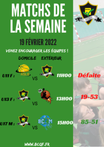 Voilà les résultats des rencontres du week-end des 19-20 février 2022.