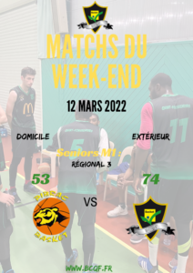 | RM3-P2 | 3957 | UNION SPORTIVE PIBRACAISE | BASKET CLUB QUINT FONSEGRIVES – 1 | 12/03/2022 | 53 | 74 |