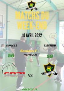 | DFU11-3 | 8399 | BASKET CLUB QUINT FONSEGRIVES | BLAGNAC OCCITANIE BASKET CLUB | 09/04/2022 | 20 | 12 |