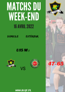 | DMU15 | 15075 | BCQF | BASKET CLUB VERFEILLOIS | 16/04/22 | 14h00 | SALLE POLYVALENTE DU COLLEGE |