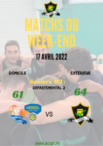 Une victoire et une défaite pour les 2 matches des 16-17 avril 2022.
