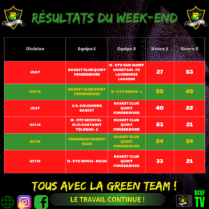 | BASKET CLUB QUINT FONSEGRIVES | IE – CTC BAB’SS – 1 | 17/09/2022 | 18h00 | 55 | 45 |
