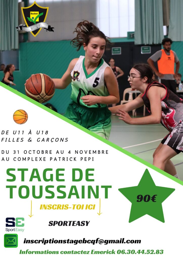 Stage d’Automne du BCQF, du 2 au 4 novembre 2022 (attention nouvelles dates)Billet publié dans Stage le 25 octobre 2022 par Frederic.P Du mercredi 2 au vendredi 4 novembre 2022, au complexe Pépi. Stage ouvert de U11 à U18, fille et garçon. Coût 50 € (ne pas tenir compte des informations de l’affiche ci-dessous)