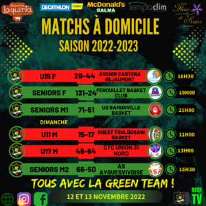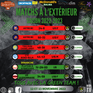 Tous les résultats des matchs du weekend (12-13 novembre 2022), et 3 victoires pour les 3 équipes seniors qui jouaient à domicile !