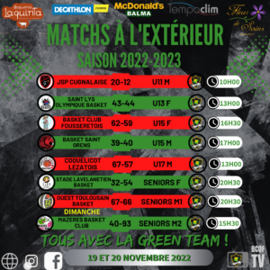 IDFU15 IE – BASKET CLUB FOUSSERETOIS – 1 BASKET CLUB QUINT FONSEGRIVES 19/11/2022 62 59