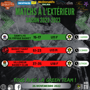 | DMU13 | 31036 | IE – BASKET SAINT ORENS | BASKET CLUB QUINT FONSEGRIVES | 26/11/2022 | 51 | 23 |