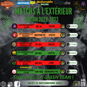 | DM2 | 13117 | CARAMAN BASKET CLUB – 2 | BASKET CLUB QUINT FONSEGRIVES – 2 | 11/12/2022 | 48 | 102 |