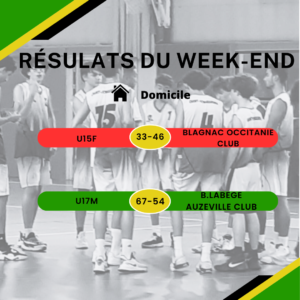| 17m.R2.R3 | BASKET CLUB QUINT FONSEGRIVES | B. LABEGE AUZEVILLE CLUB | 16/09/2023 | 67 | 54 |