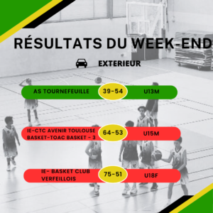 | 18F.R2.R3 | IE – BASKET CLUB VERFEILLOIS | BASKET CLUB QUINT FONSEGRIVES | 16/09/2023 | 75 | 51 |