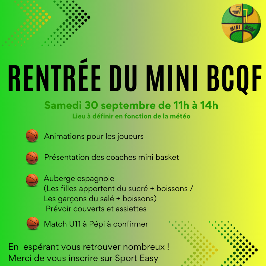 Rentrée de l’école de mini-basket samedi 30 septembre 2023Billet publié dans Ecole de Mini-Basket le 20 septembre 2023 par Frederic.P