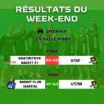 | RMU17-3 | 4937 | BASKET CLUB MARTIEL | BASKET CLUB QUINT FONSEGRIVES | 25/11/2023 | 46 | 63 |
