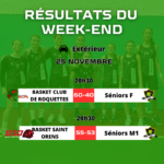 | RM3 | 3176 | IE – BASKET SAINT ORENS – 1 | BASKET CLUB QUINT FONSEGRIVES – 1 | 25/11/2023 | 55 | 53 |