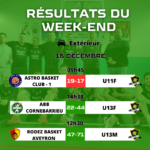 | RMU13-2 | 5738 | IE – RODEZ BASKET AVEYRON | BASKET CLUB QUINT FONSEGRIVES | 16/12/2023 | 47 | 71 |