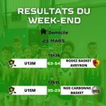| RMU13-2 | 5794 | BASKET CLUB QUINT FONSEGRIVES | IE – RODEZ BASKET AVEYRON | 23/03/2024 | 63 | 54 |