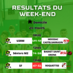 | DM2 | 13169 | BASKET CLUB QUINT FONSEGRIVES – 2 | BASKET SAINT ORENS – 2 | 24/03/2024 | 74 | 58 |