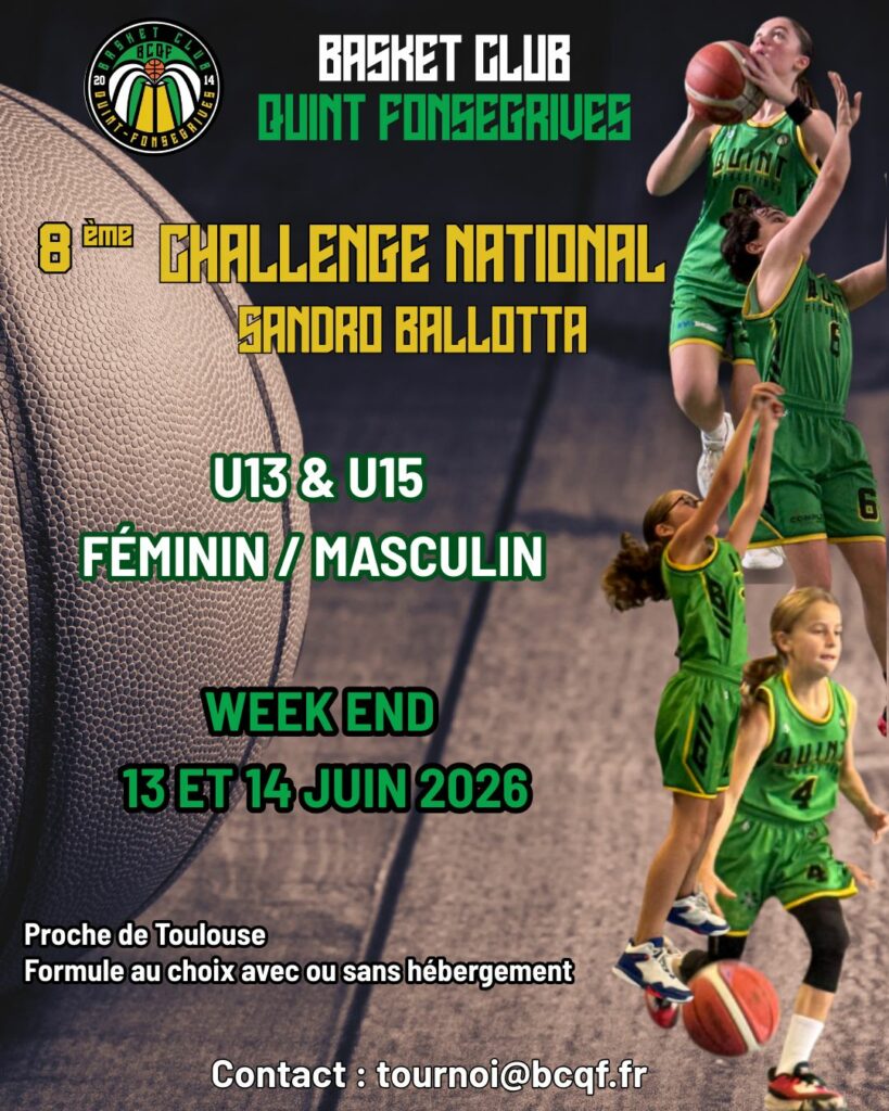 Pour la 8ème édition de son tournoi national, le Basket Club Quint-Fonsegrives invite vos équipes U13F et U15F, U13M et U15M, à venir partager un weekend sportif et convivial, à l’accent du sud.