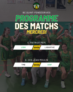Ce week-end, nos équipes sont au repos avec le début des vacances. Mais avant ça, nos U15M et U18F iront chercher leur qualification en 1/2 de coupe de la Garonne.