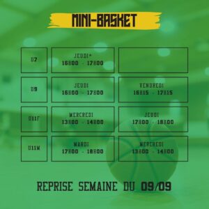 École de Mini-Basket du BCQF Bienvenue sur la page de l’École de Mini-Basket du BCQF Depuis 2020 l’École est labellisée par le comité 31 ! Horaires des entrainements (2024-2025) : Tous les articles sur l’Ecole de Mini-Basket du BCQF Tous les articles U7 Tous les articles U9 Tous les articles U11F Tous les articles U11M