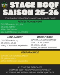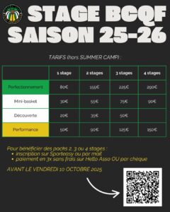 Nous sommes heureux de vous présenter la nouvelle édition des stages de basket pour la saison 2025-2026 !